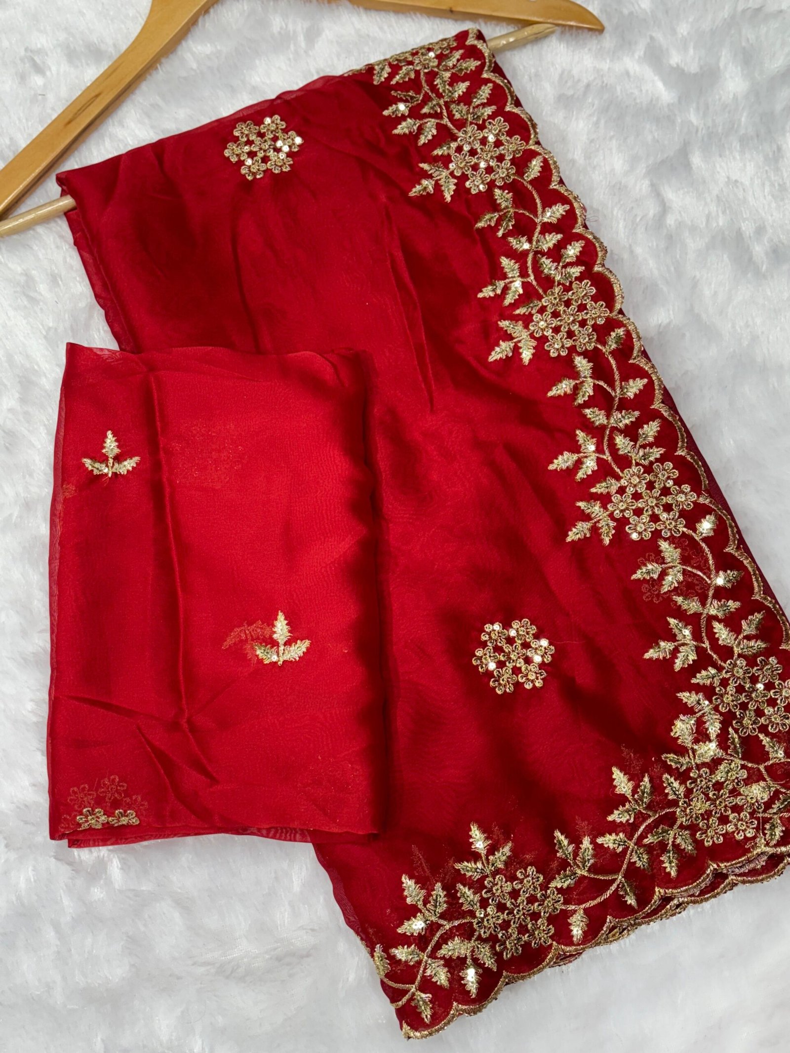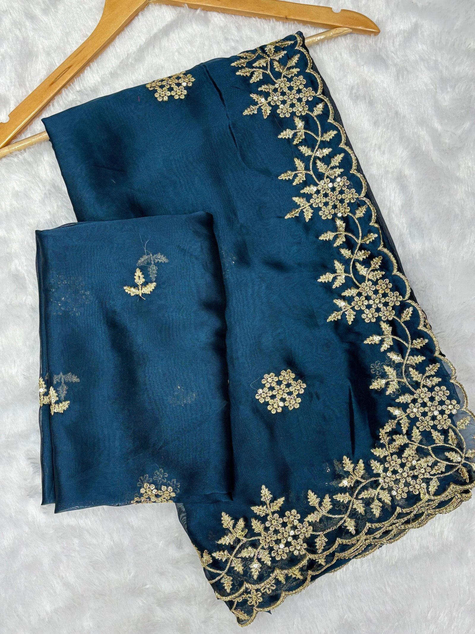 Step into the spotlight with the Chamak Royal Multi-Sequence Embroidery Saree. Crafted from premium Rangoli Fabric with a matching Rangoli Blouse, this saree features exquisite Multi-Sequence Embroidery Work that ensures you shine at every event. Perfect for weddings and festive celebrations, this Party Wear Saree combines traditional elegance with modern glamour. Experience the true ‘Chamak’ of designer fashion.