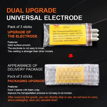 The Low Temperature Universal Welding Rod is a practical and easy repair solution designed for quick welding and bonding of multiple materials using low heat. These rods melt at a low temperature and can be used with a simple lighter or heat source—no professional welding machine required.