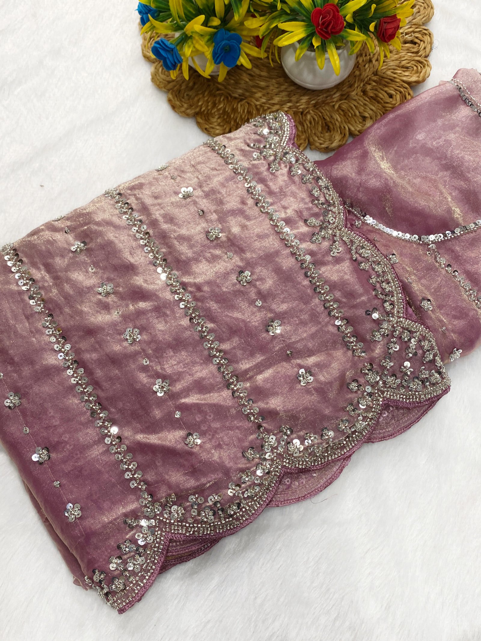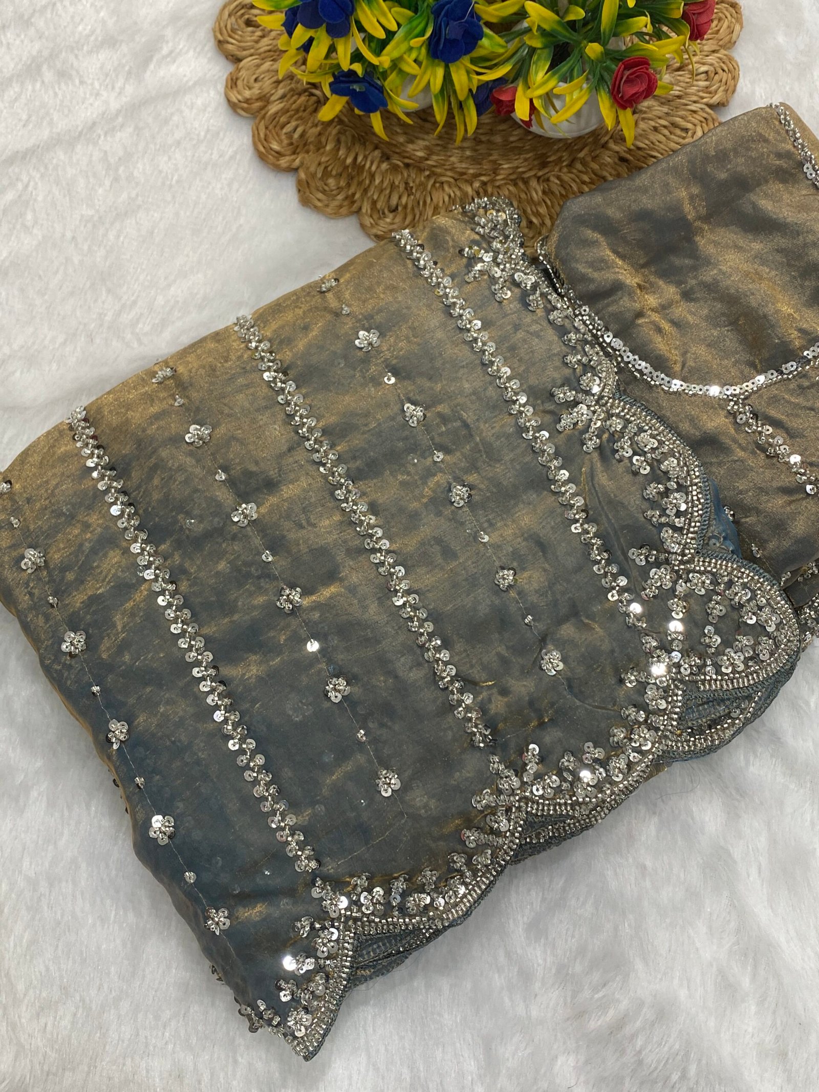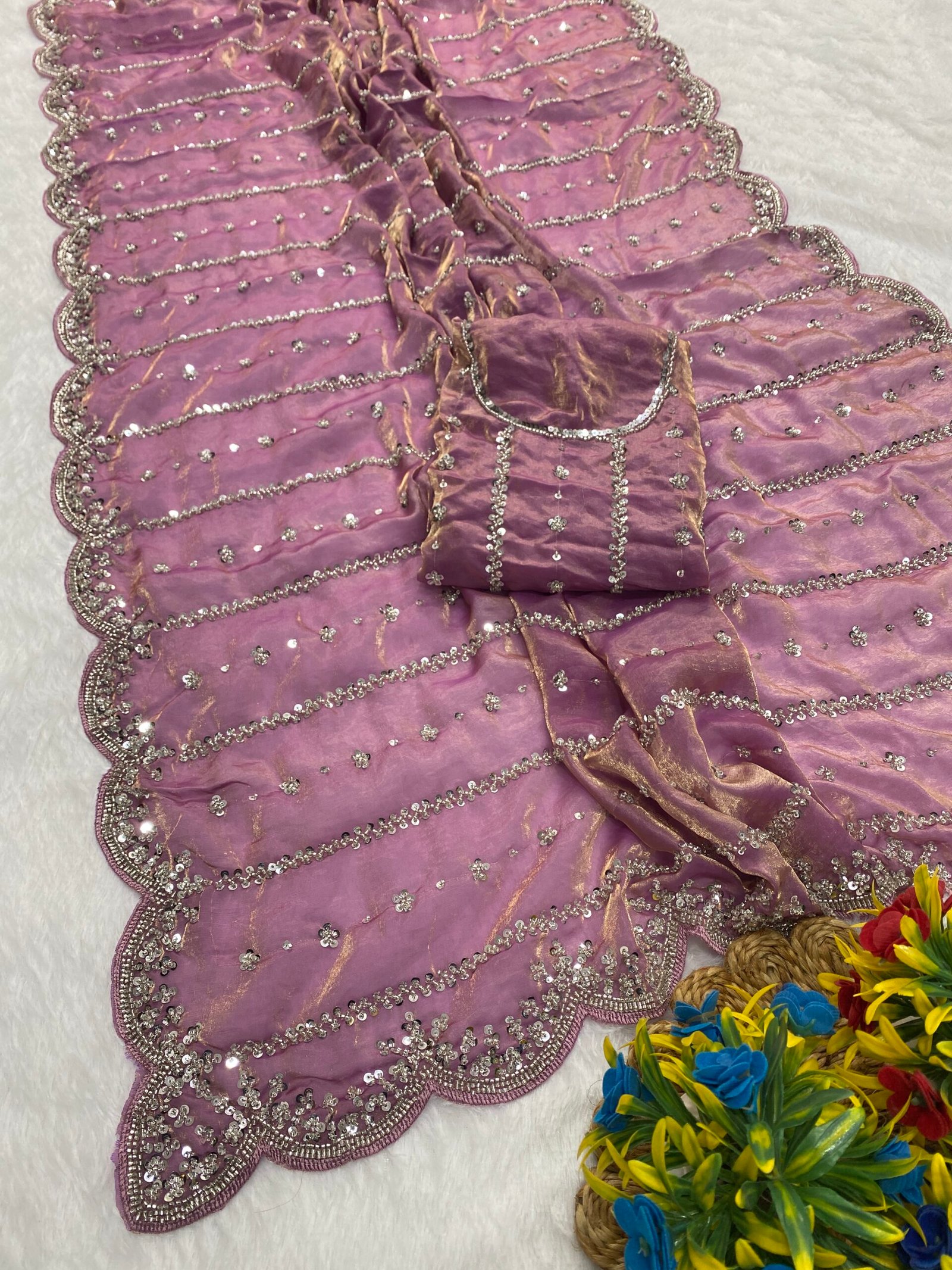 Fabric: Fendy Satin | Blouse: Fendy Satin | Type: Beads & Embroidery Work