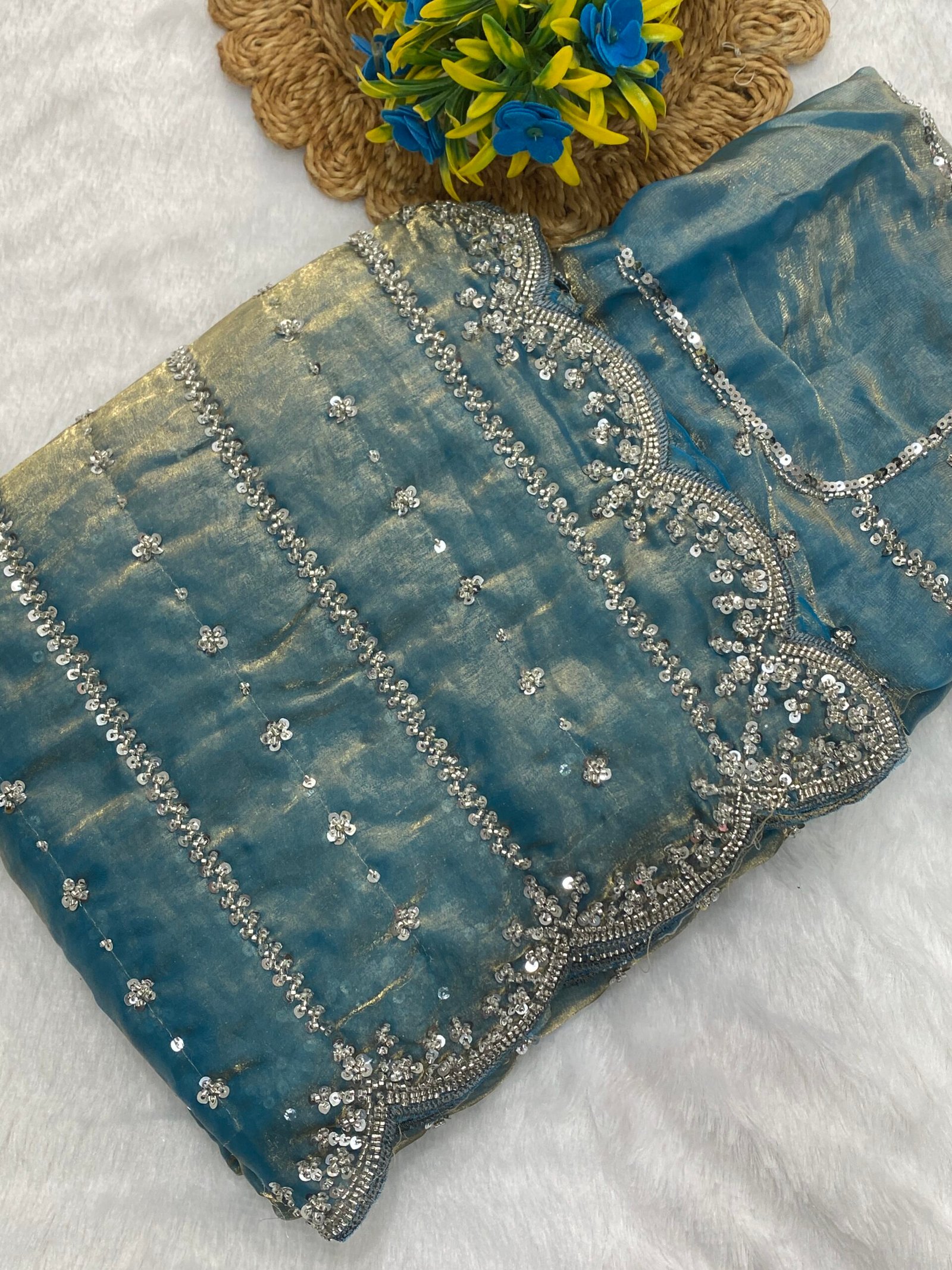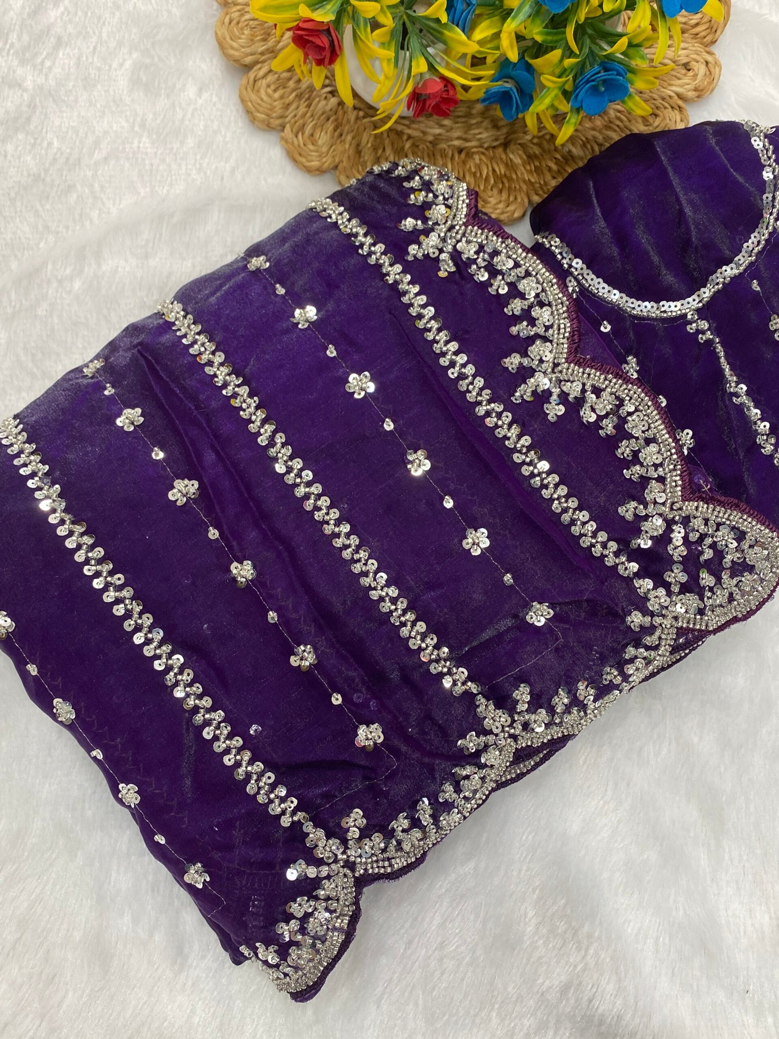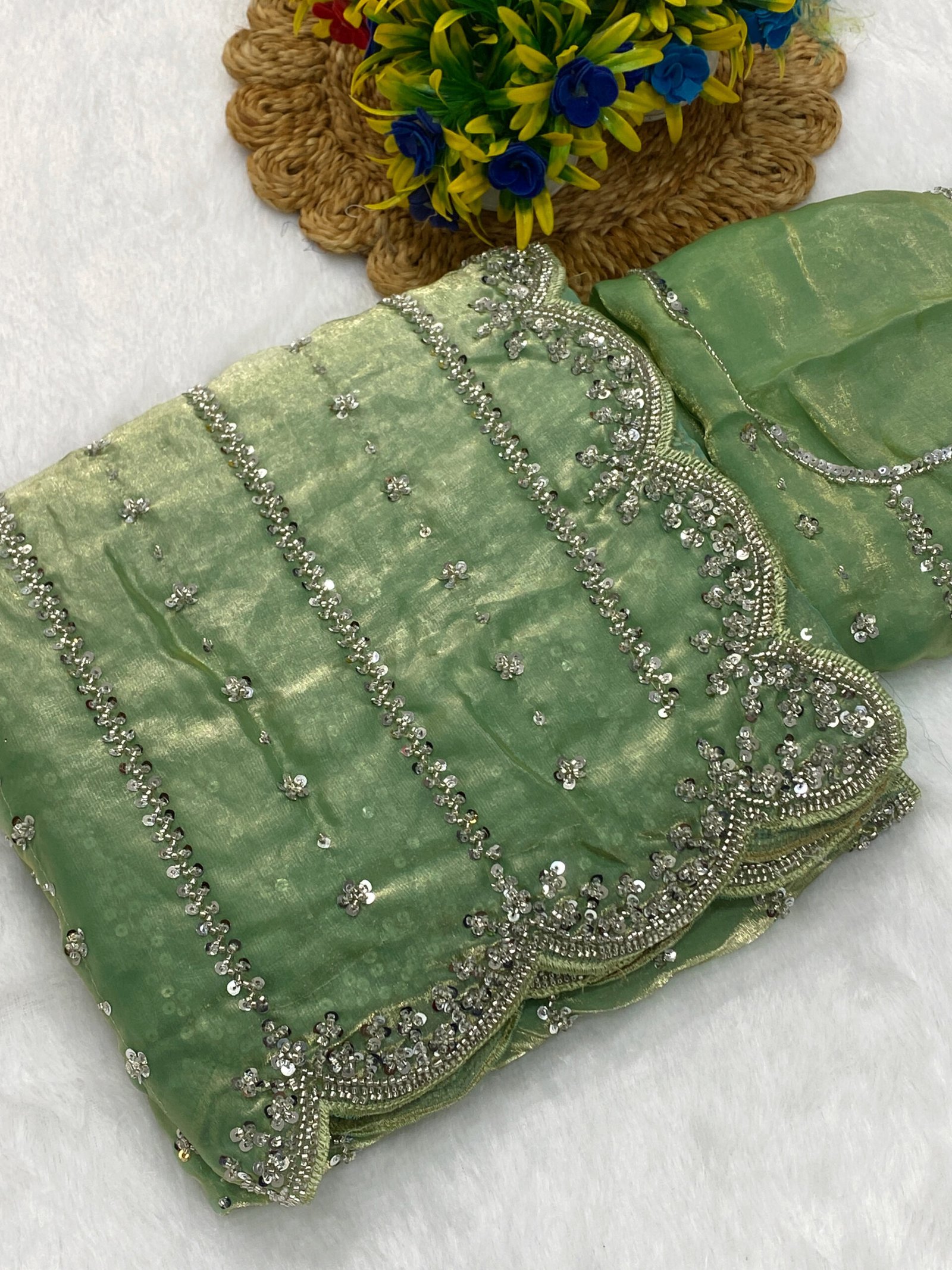 Fabric: Fendy Satin | Blouse: Fendy Satin | Type: Beads & Embroidery Work