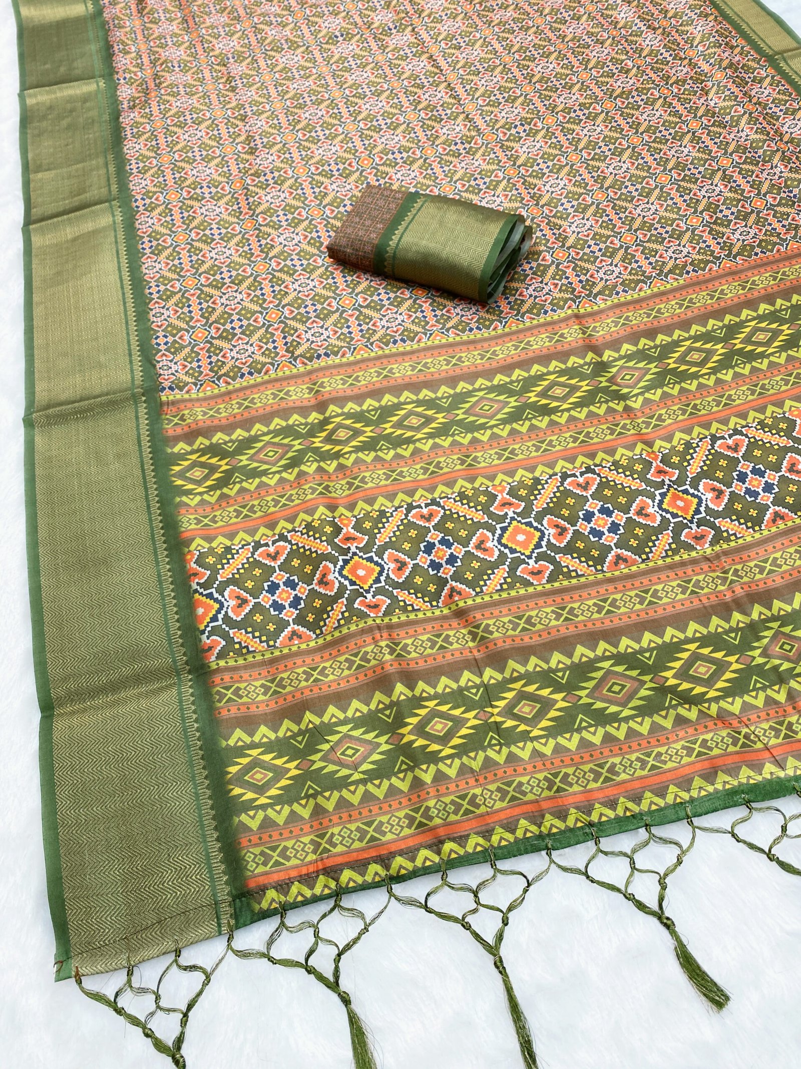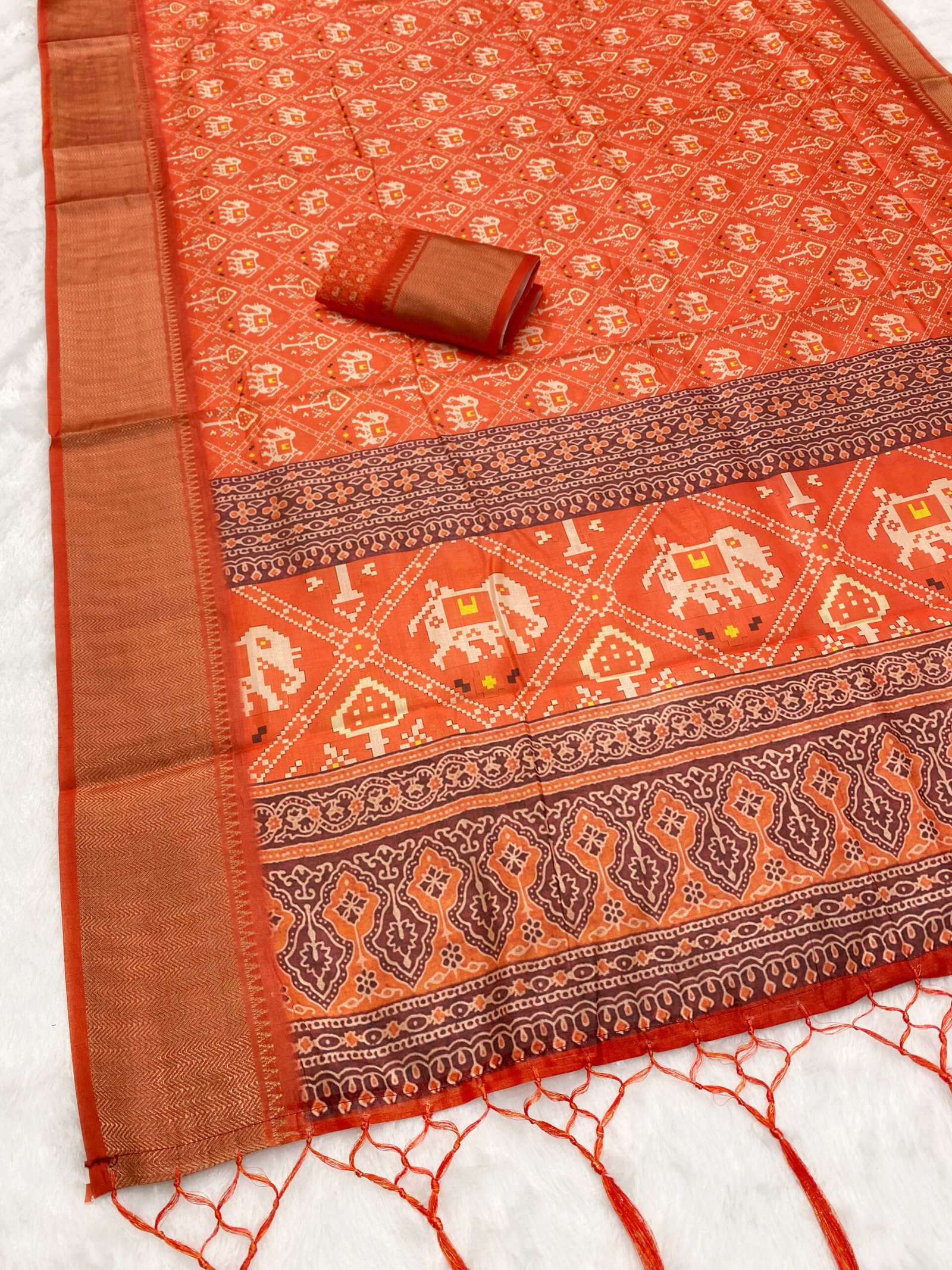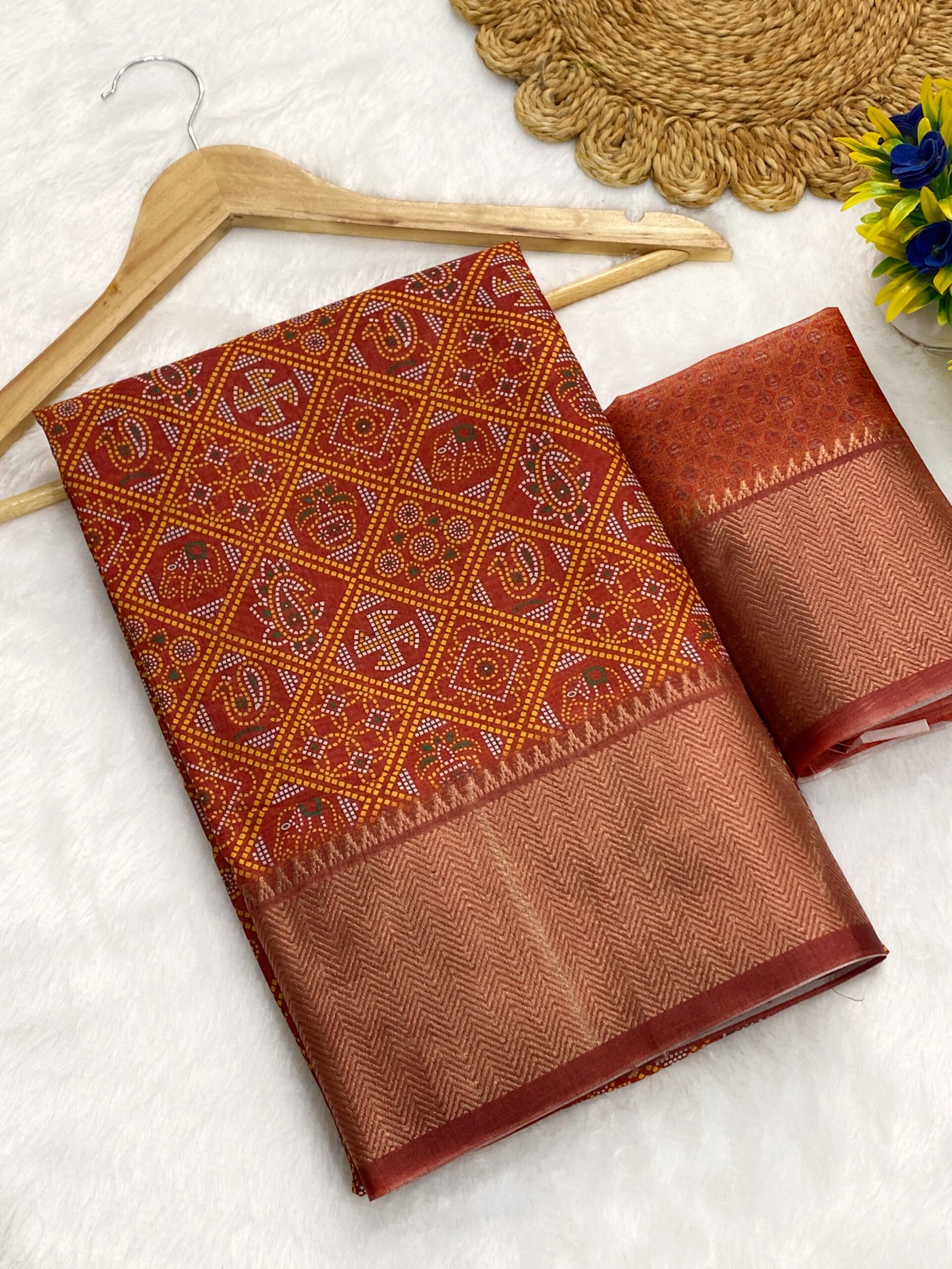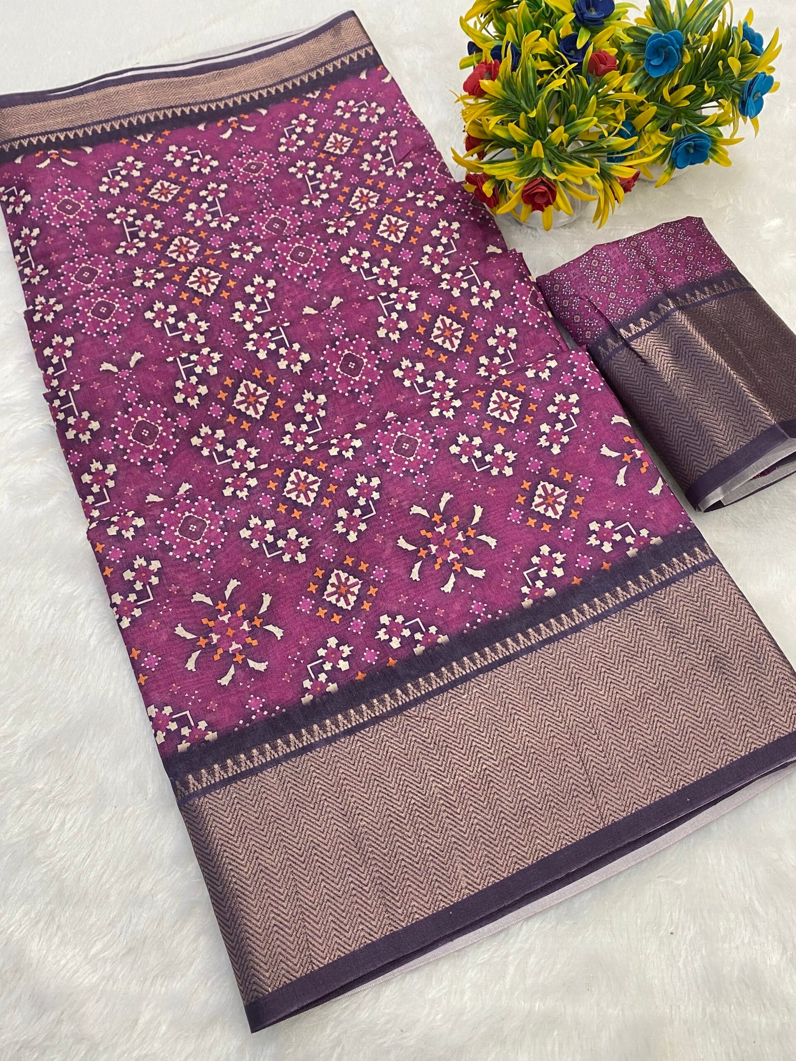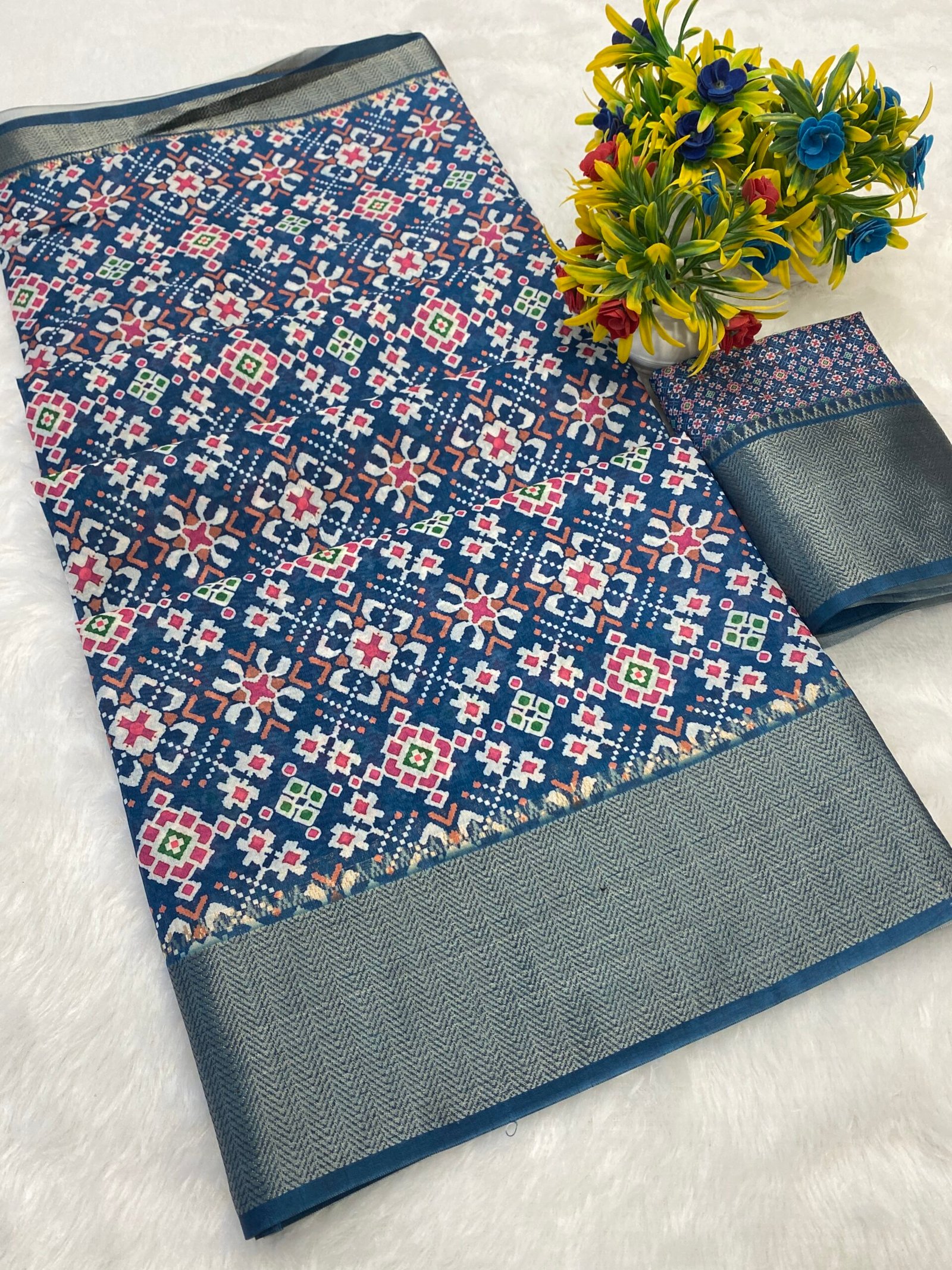 Technical Specs: Fabric: Dola Silk | Blouse: Dola Silk | Type: Digital Print. A beautiful party wear saree for all occasions.