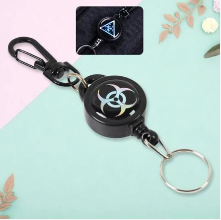 - Metal lobster clasp design on top of reel is simple but secure wherever you attach It. Just simply pull the key out that is attached with stainless steel cord, the cord will be self retracting.