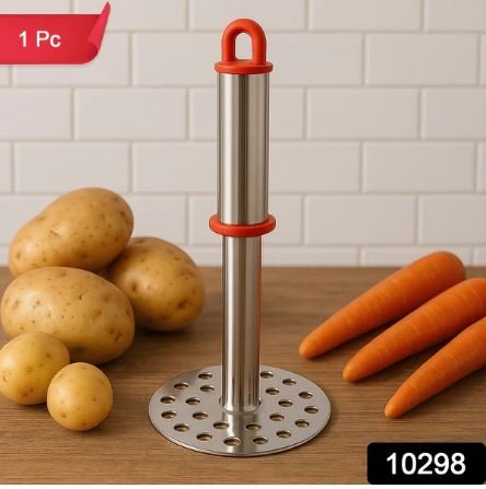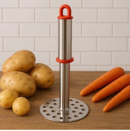 This high-quality stainless steel potato masher is designed to make mashing effortless, efficient, and comfortable. Crafted from durable food-grade stainless steel, it resists rust, corrosion, and bending, ensuring long-lasting performance. The wide mashing plate with evenly spaced holes allows smooth and lump-free mashing of potatoes, carrots, pumpkins, bananas, and other soft foods. The ergonomic handle with a comfortable grip and anti-slip accents provides excellent control, reducing strain during use. Equipped with a hanging loop for easy storage, this masher is perfect for everyday cooking in both home and professional kitchens.