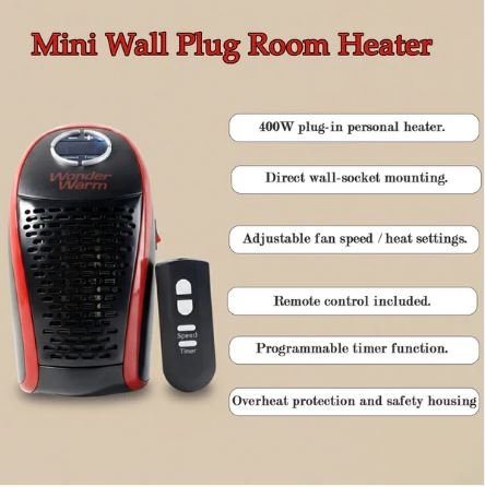 wonder warm heater,plug in wall heater, mini wall heater, portable space heater, electric personal heater, remote control heater, compact heater for room,small electric heater, plug heater with remote, programmable timer heater,living room heater, mini plug heater, energy efficient heater, compact wall plug heater, portable room warmer